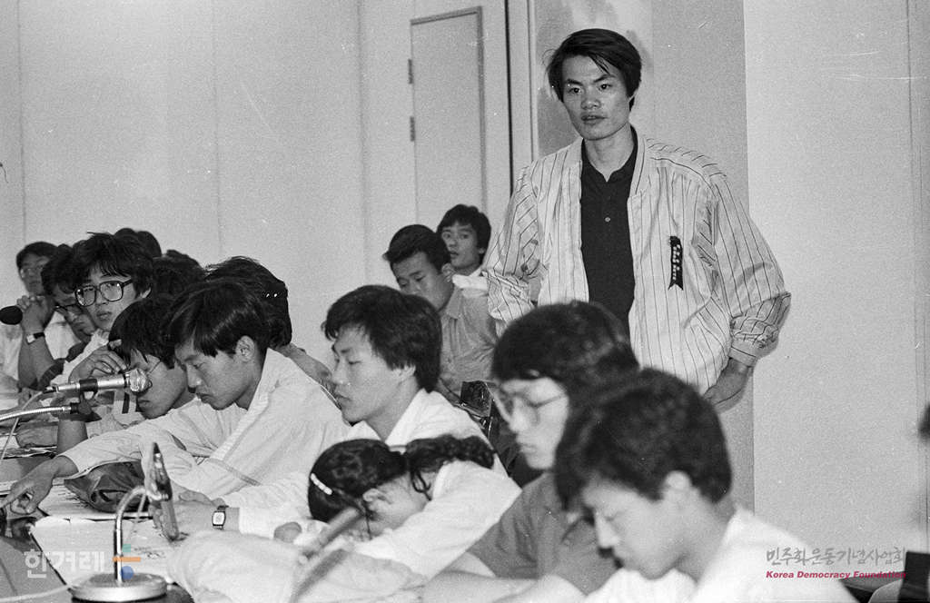 - 1989년 5월 23일 서울대생 90여명은 서울 영등포구 여의도동 평민당 중앙당사 복도를 점거한 채 보수대연합 음모를 중지하고 노태우 퇴진투쟁에 동참할 것으로 요구하며 농성중 평민당 당 관계자와 면담을 하고 있다.