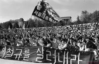 - 1989년 5월 25일 서총련 소속 대학생 4백여명은 서울 단국대 운동장에서 문익환목사 석방촉구와 평양축전 참가를 위한 제 1차 결의대회를 열고 정부는 문목사를 석방하고 남북교류 창구를 독점하지 말 것 등 6개항을 요구하며 결의대회를 갖고 있다. 이날 행사장 주변엔 평양 애국문 인쇄출판 공장에서 제작된 세계청년학생축전 홍보포스터 34장이 전시됐다. 이 포스터는 지난 8일 재일한국학생 동맹측으로부터 전달된 것으로 알려졌다.