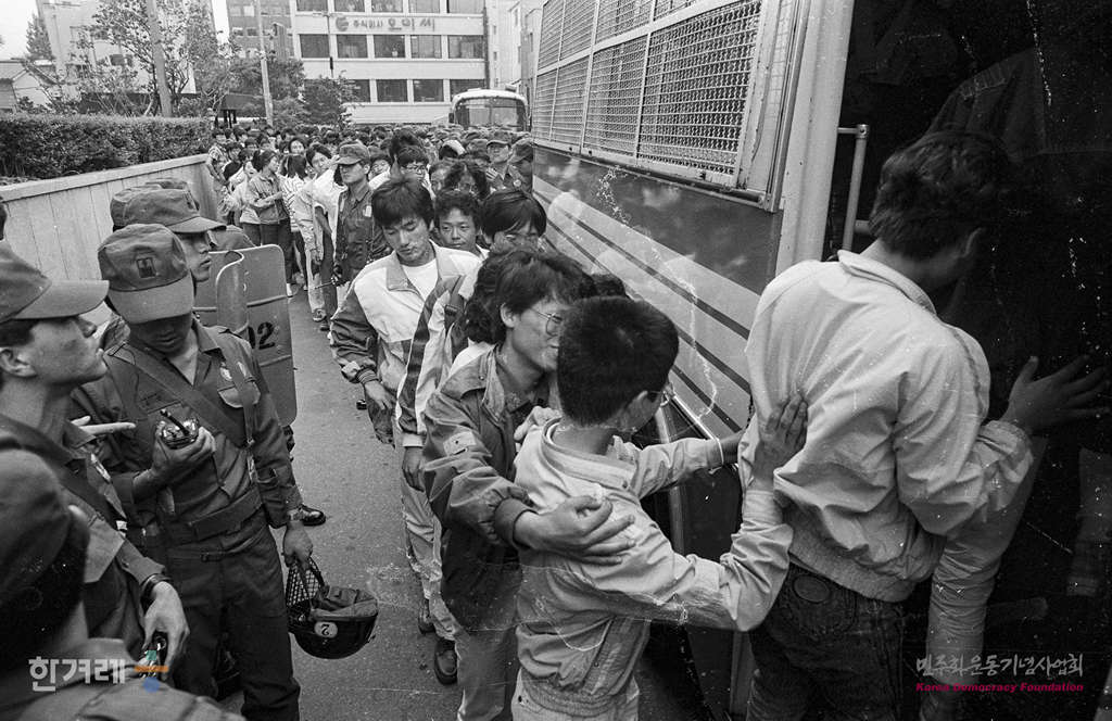 - 1989년 5월 26일 서울대 전남대 부산대 등 전국 13개 국공립사범대학생 2천명은 서울대 노천극장에서 문교부 교원임용 종합대책안 결사저지를 위한 문교부 항의방문 출정식을 가진 뒤 광화문네거리에서 문교부가 있는 종합청사앞까지 행진을 벌이려 했으나 경찰에 의해 연행되고 있다.