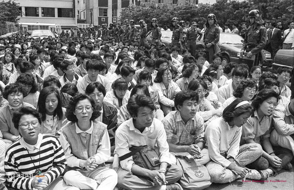 - 1989년 5월 26일 서울대 전남대 부산대 등 전국 13개 국공립사범대학생 2천명은 서울대 노천극장에서 문교부 교원임용 종합대책안 결사저지를 위한 문교부 항의방문 출정식을 가진 뒤 광화문네거리에서 문교부가 있는 종합청사앞까지 행진을 벌이려 했으나 경찰에 의해 연행되고 있다.