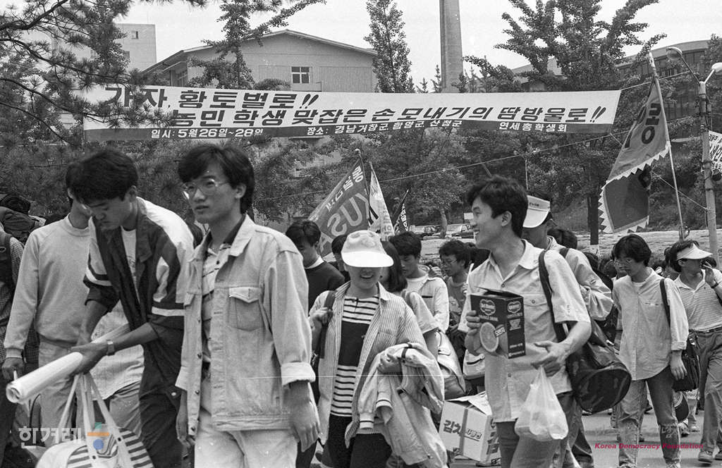 - 1989년 5월 26일 연세대학교 학생들이 3일간 경남 거창군 함양군 산청군 등 3개군에 모내기 지원을 농촌활동을 떠나고 있다.