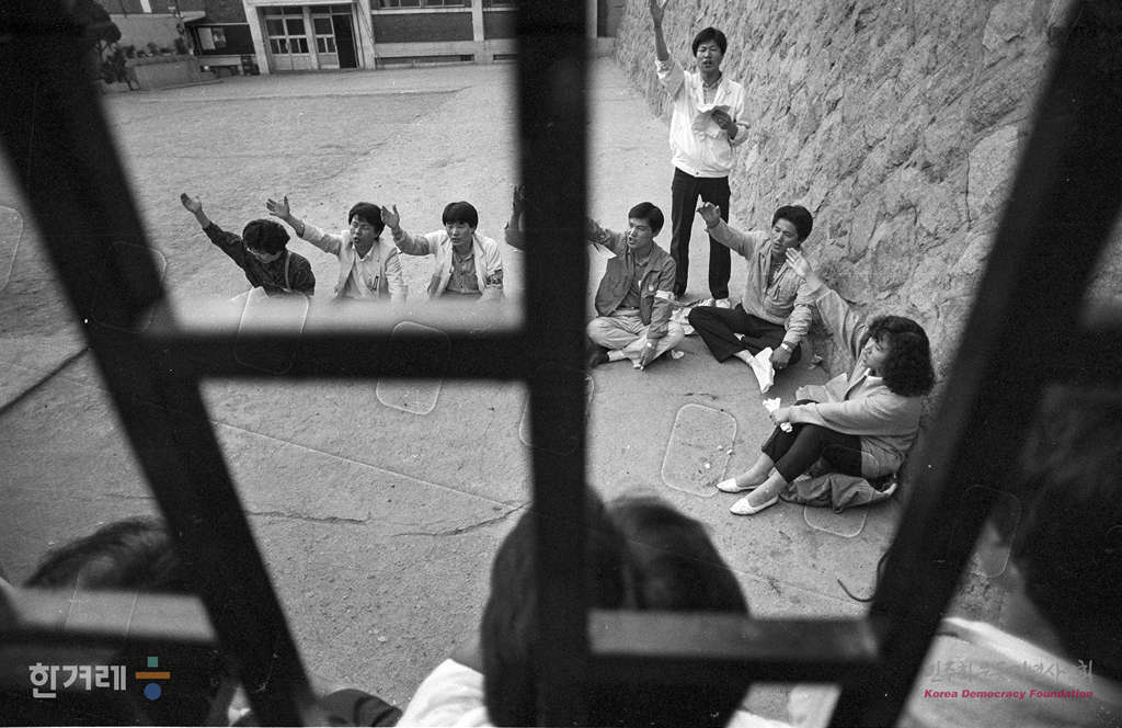 - 1989년 5월 26일 오후 6시 30분 서울 유성전자공업학교 교사 10명이 교내운동장에서 교직원노조 유성전자공업학교 분회 준비위원회 결성대회를 가진 뒤 연좌농성을 벌이고 있다.