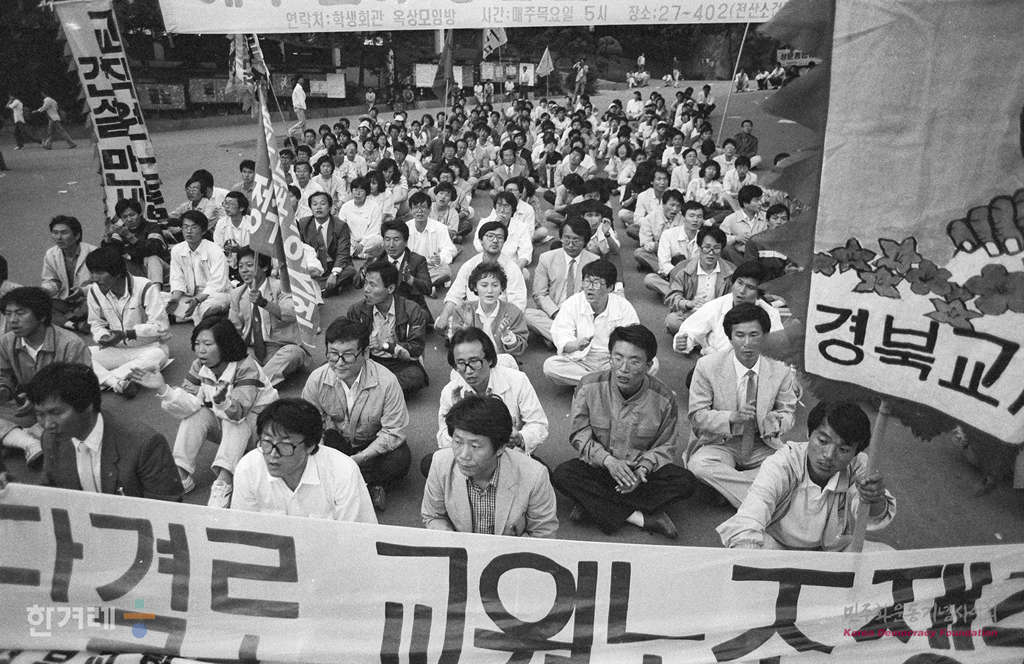 - 1989년 5월 27일 전국 각 지역에서 모인 교사 1백여명이 전국교직원노동조합의 결성식에 열린 예정인 서울 한양대에 모여 경찰의 원천봉쇄에서 불구하고 28일 결성대회를 강행키로 결의하고 있다.