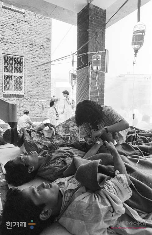 - 1989년 5월 30일 조선대 이철규씨 사인 진상규명 등을 요구하며 전대협 소속 전국대학생들이 명동성당에서 6일째 단식농성을 벌이다 탈진을 하자 서울대 의대 학생들이 긴급하게 수액주사를 놔준 상태에서도 농성을 이어가고 있다.