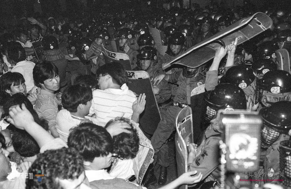 - 1989년 5월 31일 이철규씨 사인진상규명을 요구하며 명동성당에서 단식농성중인 학생들과 합류하기 위해 명성성당에 가려던 서울시내 대학생들이 명동 제일백화점 앞에서 경찰에 막히자 항의를 하며 몸싸움을 벌이고 있다