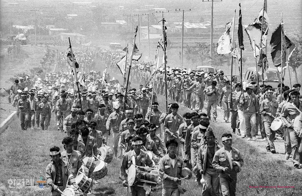 - 1989년 5월 31일 오전 8시 30분 대우조선 노조원 9천여명은 지난 29일 회사 기숙사에서 임금인상동결과 노조분열기도에 항의하며 분신으로 숨을 거둔 고 이상모열사 장례 절차 보고 및 사용자 규탄대회를 열고 있다.