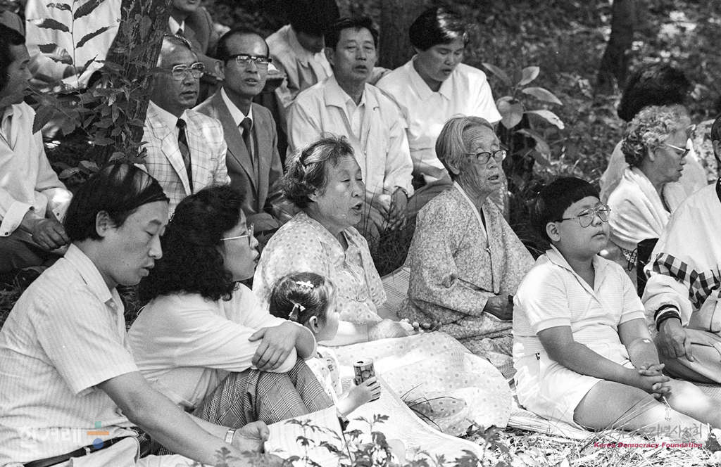 - 1989년 6월 1일 오후1시 문익환 목사의 일흔한번째 생일을 맞아 경기도 안양시 호계3동 안양교도소에서 노모 김신묵시와 부인 박용길 장로를 비롯한 가족과 교인들이 문목사를 면회한를 기다리고 있다.