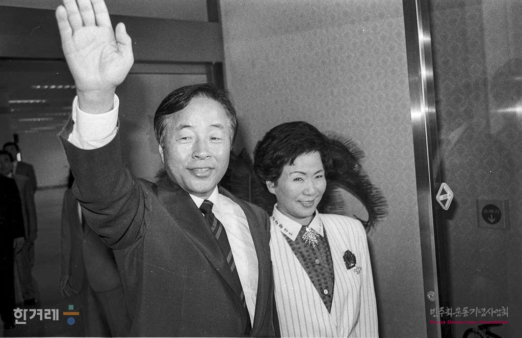 - 1989년 6월 1일 소련방문길에 오르는 김영삼 민주당 총재가 김포공항에서 배웅나온 당관계자들에게 인사를 하고 있다.