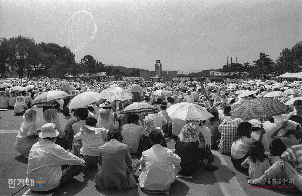 - 1989년 6월 6일 오후1시 천주교 정의구현 전국사제단은 신부1벽여명과 신도 3천여명이 참석한 가운데 경기도 파주 임진각 망배단앞 광장에서 민족의 화해와 나라의 평화를 위한 통일염원 미사를 드리고 있다.