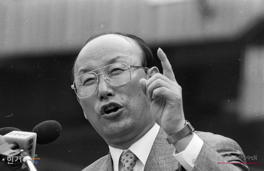 - 1989년 6월 2일 서울 여의도 순복음교회의 구국과 통일을 위한 기도회가 서울 잠실올림픽 경기장에서 열려 10만명의 신도가 참석한 가운데 조용기 목사가 연설을 하고 있다.