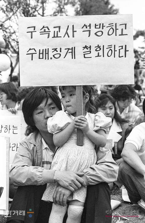 - 1989년 6월 4일 서울지역 노동자 7백여명은 서울 서강대에서 서울지역 노조협의회 창립 1주년 기념 및 구속노동자 석방 및 노동악법 개정 촉구대회를 하고 있다.