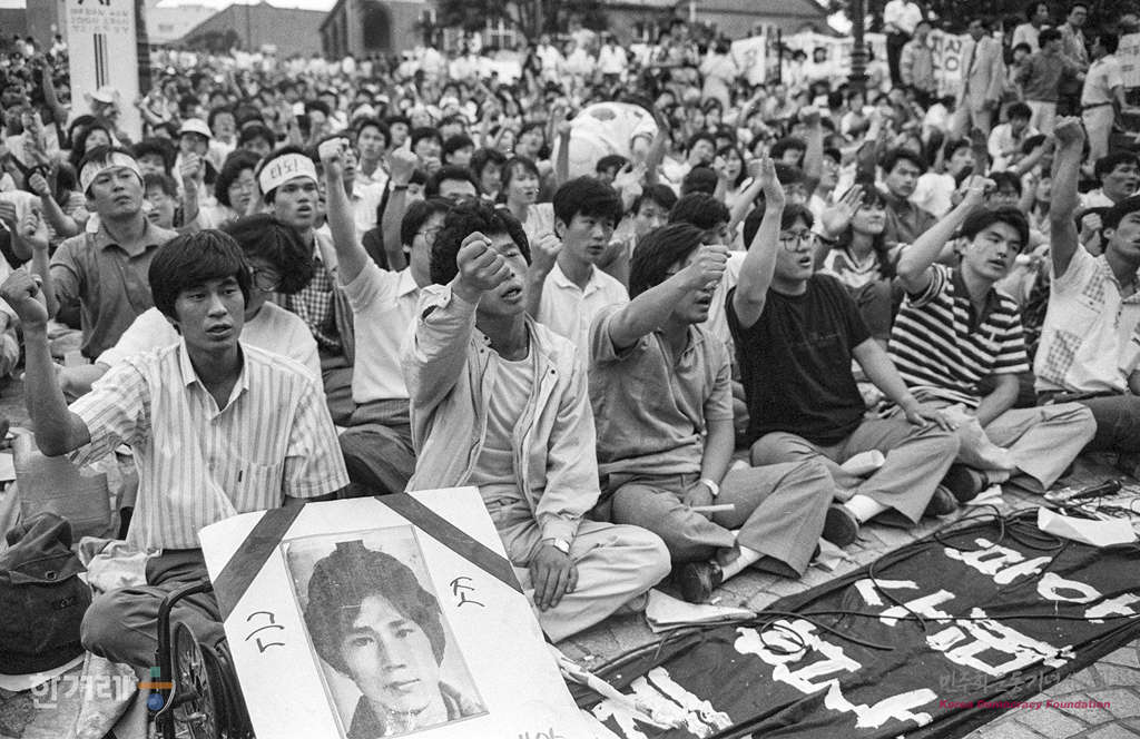 - 1989년 6월 3일 조선대생 이철규씨 사인규명 등을 요구하는 대학생들의 서울 명동성당 단식농성이 열흘째 계속되면서 많은 학생들이 탈진한 가운데 경찰의 봉쇄를 뚫고 들어온 시민 학생들이 지지집회를 갖고 있다.