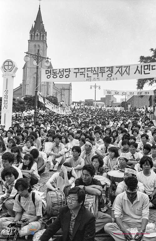 - 1989년 6월 3일 조선대생 이철규씨 사인규명 등을 요구하는 대학생들의 서울 명동성당 단식농성이 열흘째 계속되면서 많은 학생들이 탈진한 가운데 경찰의 봉쇄를 뚫고 들어온 시민 학생들이 지지집회를 갖고 있다.