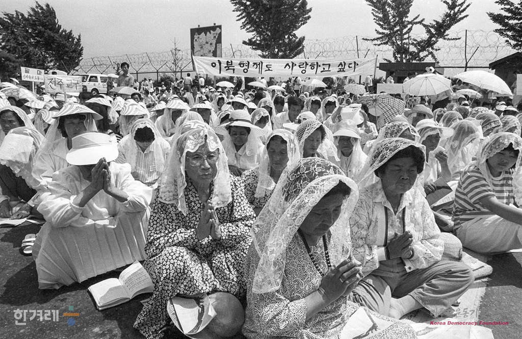 - 1989년 6월 6일 오후1시 천주교 정의구현 전국사제단은 신부1벽여명과 신도 3천여명이 참석한 가운데 경기도 파주 임진각 망배단앞 광장에서 민족의 화해와 나라의 평화를 위한 통일염원 미사를 드리고 있다.