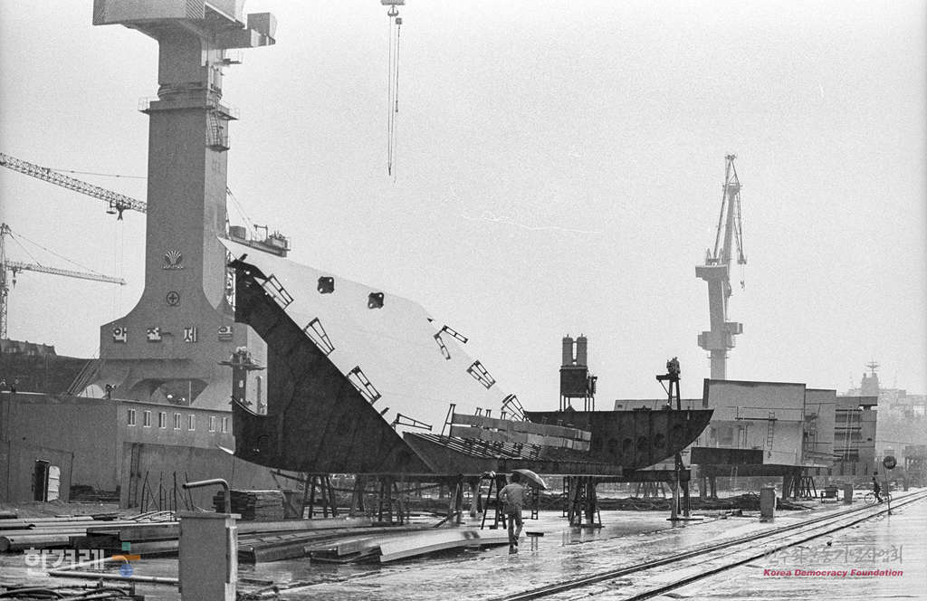 - 1989년 6월 7일 거제 대우조선 노동자 8천여명가 회사운동장에서 파업 찬반여부를 묻는 투표를 개표하고 있다. 이날 노조쪽이 파업을 결의함에 따라 회사쪽은 최단시일안에 절차를 밟아 폐업신고를 내기로 결정하면서 전날 사표를 낸 관리직 직원 3천여명도 츨근하지 않아 조선소 작업장에 아무도 보이지 않는다.