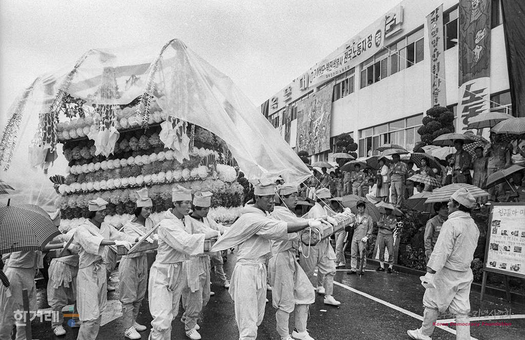 - 1989년 6월 8일 대우조선 분신노동자 고 이상모, 박진석씨의 합동장례식이 비가 내리는 가운데 옥포조선소 운동장에서 열려 노동자 시민 등 3천여명이 참석한 가운데 전국 노동자장으로 열리고 있다.