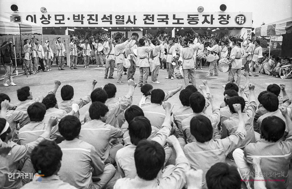 - 1989년 6월 8일 대우조선 분신노동자 고 이상모, 박진석씨의 합동장례식이 비가 내리는 가운데 옥포조선소 운동장에서 열려 노동자 시민 등 3천여명이 참석한 가운데 전국 노동자장으로 열리고 있다.