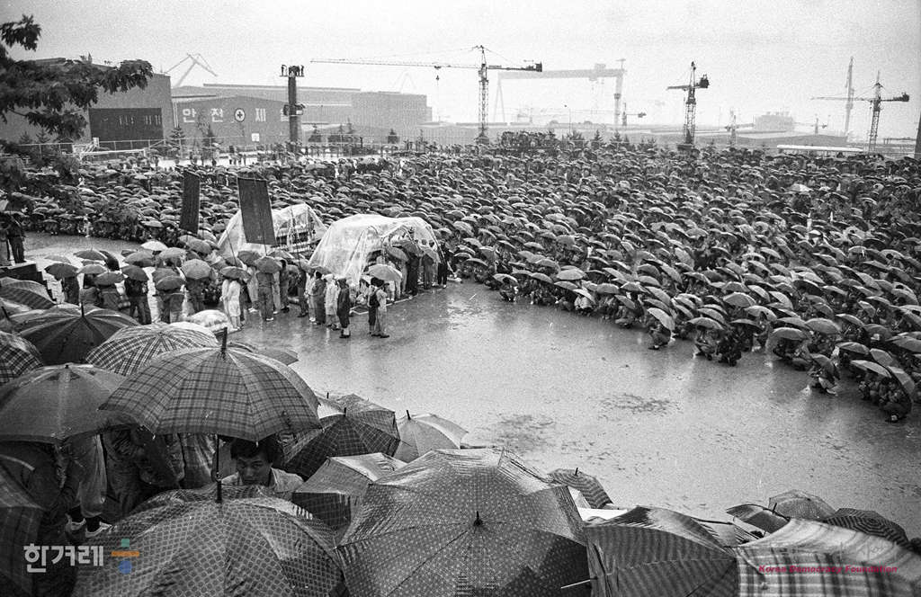 - 1989년 6월 8일 대우조선 분신노동자 고 이상모, 박진석씨의 합동장례식이 비가 내리는 가운데 옥포조선소 운동장에서 열려 노동자 시민 등 3천여명이 참석한 가운데 전국 노동자장으로 열리고 있다.