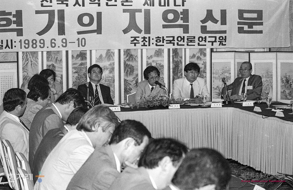 - 1989년 6월 9일 한국언론연구원이 서울 올림피아호텔에서 변혁기의 지역신문을 주제로 연 전국지역언론 세미나에 언론학자와 신문관계자들이 참석해 열띤 토론을 펼치고 있다.