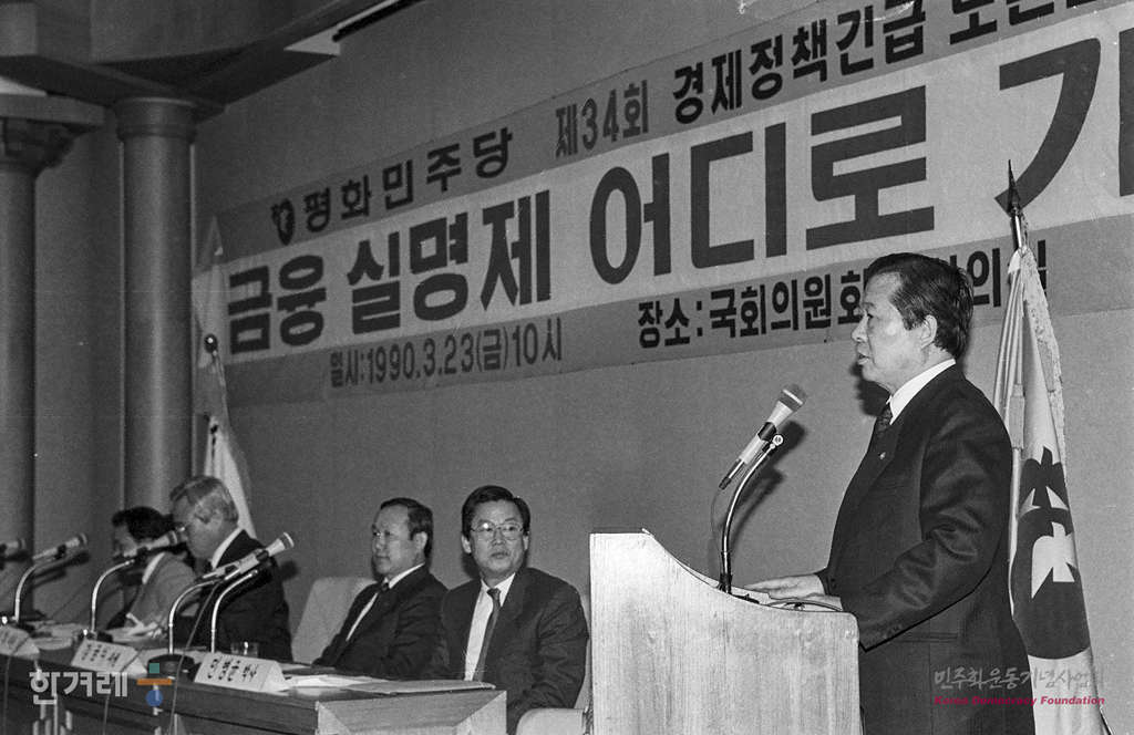 - 1990년 3월 23일 평민당은 국회의원 회관에서 금융실명제 어디로 가는가라는 주제로 경제정책 토론회를 하고 있다.