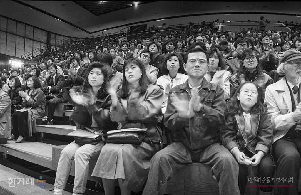 - 1990년 3월 24일 오후2시 국민주로 시작된 한겨레신문사 제2기 정기주주총회가 서울 올림픽공원에 있는 역도경기장에서 3천여명의 주주가 참석한 가운데 주주총회를 하고 있다.