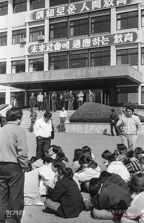 - 1990년 3월 26일 재단쪽의 교사해직으로 학생들이 수업을 거부하는 등 진통을 계속되는 인천 명신여고가 3일간 임시휴업에 들어간 가운데 명신여고 학생과 하부모 4백여명이 시교위앞에서 항의농성을 벌이고 있다.