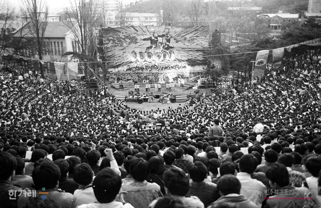 - 1990년 3월 24일 노래를 찾는 사람들, 노동자 노래단, 민요연구회 등 8개 단체의 출연자만도 120명이 되는 노래운동단체 큰잔치 ‘자 우리손을 잡자’ 공연이 서울 연세대 노천극장이 열려 2만여명의 관객들이 공연을 즐기고 있다.
