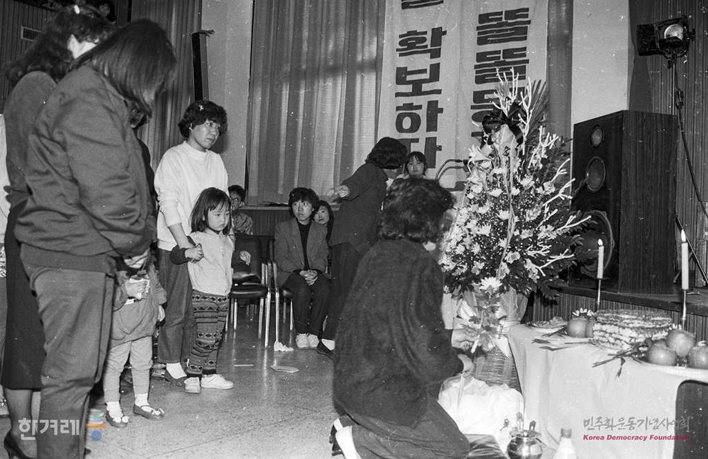- 1990년 3월 25일 지난 9일 엄마 아빠가 일터에 나간 사이 문이 잠긴 단칸 지하셋방에서 불이 나 질식해 숨진 권혜영, 권용철 오누이의 영혼을 기리는 행사가 서울 영등포구 당산동 성문빡교회에서 열려 여성단체 회원들을 비롯한 시민 4백여명이 참석해 위령제를 하고 있다.