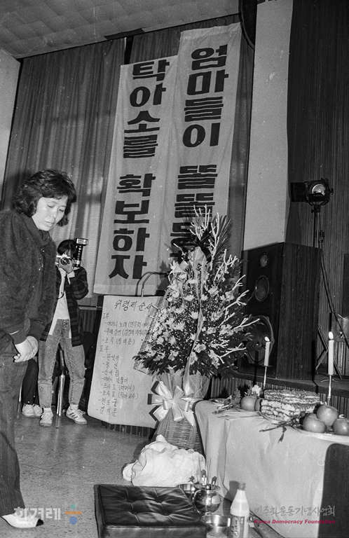 - 1990년 3월 25일 지난 9일 엄마 아빠가 일터에 나간 사이 문이 잠긴 단칸 지하셋방에서 불이 나 질식해 숨진 권혜영, 권용철 오누이의 영혼을 기리는 행사가 서울 영등포구 당산동 성문빡교회에서 열려 여성단체 회원들을 비롯한 시민 4백여명이 참석해 위령제를 하고 있다.