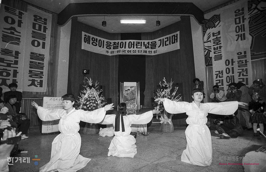- 1990년 3월 25일 지난 9일 엄마 아빠가 일터에 나간 사이 문이 잠긴 단칸 지하셋방에서 불이 나 질식해 숨진 권혜영, 권용철 오누이의 영혼을 기리는 행사가 서울 영등포구 당산동 성문빡교회에서 열려 여성단체 회원들을 비롯한 시민 4백여명이 참석해 위령제를 하고 있다.