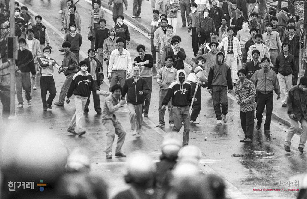 - 1990년 3월 29일 전국대학생대표자협의회가 상반기 활동방침을 노학연대, 반민자당 투쟁과 조국통일사업 대중화로 결정하고 본격적인 대정부투쟁에 나선 가운데 서강대 5백여명이 결의대회를 마친뒤 교문밖으로 진출을 시도하다 경찰과 대치하고 있다.