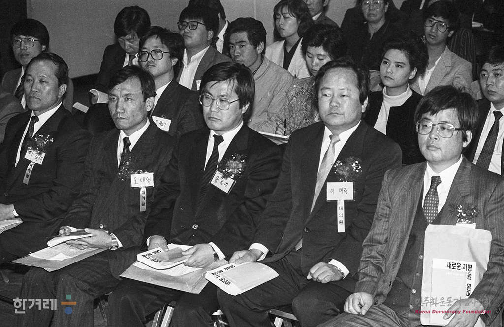 - 1990년 3월 30일 평화민주통일연구회는 서울 여의도 여성백인회관에서 김대중 평민당 총재등 관계자들이 참석한 가운데 제3차 정기총회를 열고 있다.