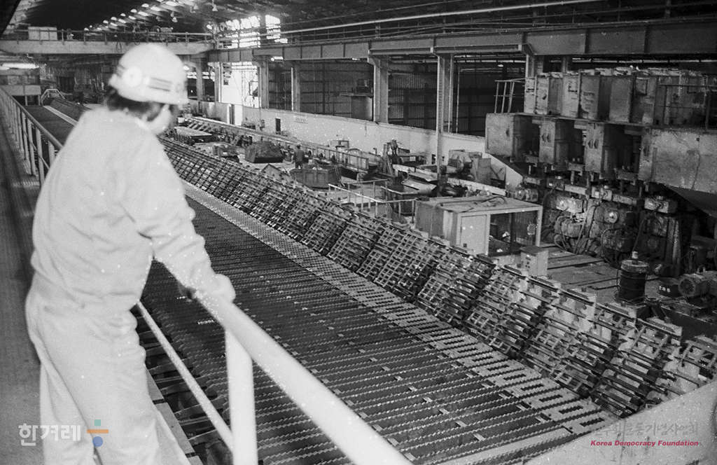 - 1990년 3월 30일 노동쟁의와 관현해 직장폐쇄에 들어간 강원산업 포항공장 노조 최영민 위원장대행 등 집행부 간부들이 노조사무실에서 기자회견을 갖고 회사쪽의 직장폐쇄 조처에 따른 대책 등을 밝히고 있다.