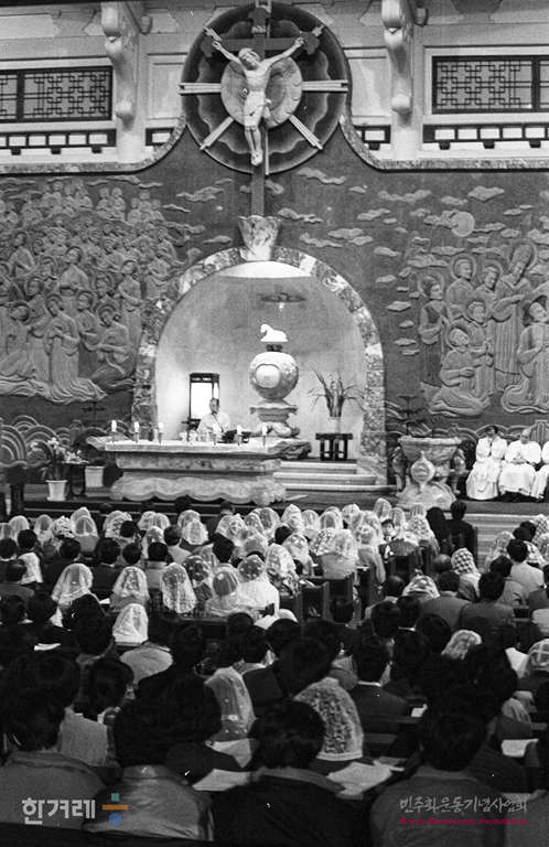 - 1990년 3월 31일 천주교 정의구현사제단이 서울 명동성당에서 안중근의사 순국 80주년추모미사를 열고 있다.
