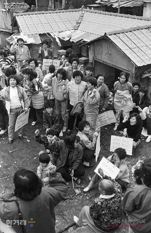 - 1990년 3월 31일 전민련 전노렵 전대협 등 11개 단체로 구성된 가칭 민자당 일당독재 분쇄와 민중기본권 쟁취를 위한 국민연합이 주최한 물가폭등 토지 주택문제 해결을 위한 국민연합 캠페인이 성북구 돈암동 철거지역에서 열려 동소돈암 철거민들이 참석한 가운데 열리고 있다. 서울을 비롯한 11개 도시에서 진행된 이번 캠페인은 경찰이 신고미비 이유로 1백50여명을 연행했다.