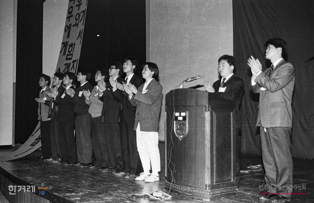 - 1990년 3월 31일 서울지역총학생회연합은 고려대에서 전체 대의원대회를 열러 민주 자주 통일 민중연대를 올해의 주된 투쟁노선으로 채택하는 한편 고려대 총학생회장 윤진호씨를 의장으로 선출했다.
