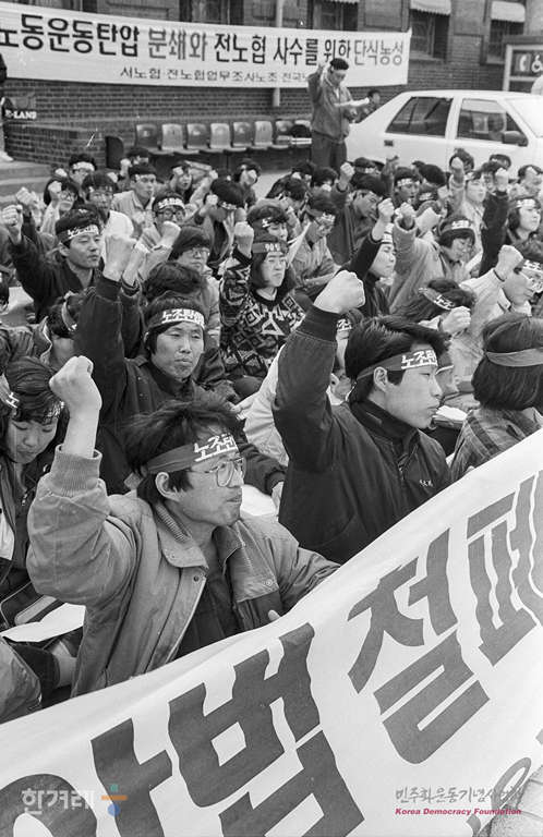 - 1990년 4월 6일 오후 4시 30분 김영대 전국노동조합협의회 위원장 직무대행을 비롯해 전노협 집행부 및 전국노동운동단체 협의회 간부들과 노동부의 업무조사 대상 노조 대표등 1백50여명은 서울 명동성당에서 노동운동탄압분쇄 와 전노협사수를 위한 3일동안 시한부 단식농성을 들어가기 전 집회를 갖고 있다.