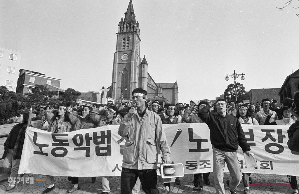 - 1990년 4월 6일 오후 4시 30분 김영대 전국노동조합협의회 위원장 직무대행을 비롯해 전노협 집행부 및 전국노동운동단체 협의회 간부들과 노동부의 업무조사 대상 노조 대표등 1백50여명은 서울 명동성당에서 노동운동탄압분쇄 와 전노협사수를 위한 3일동안 시한부 단식농성을 들어가기 전 집회를 갖고 있다.