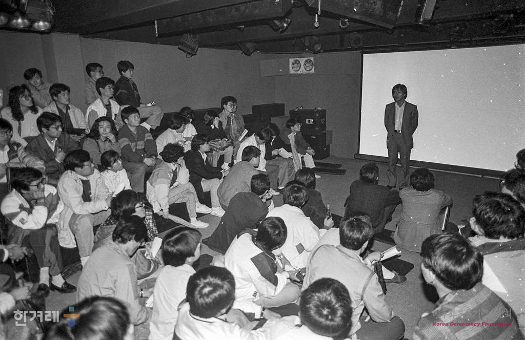 - 1990년 4월 7일 전날 6일부터 검찰 등 관계당국의 처벌방침 발표에도 불구하고 장산곶매에서 제작한 소형영화< 파업전야 >가 서울 <한마당 >예술극장 등 전국 4곳에서 일제히 상영에 들어갔다. 서울 동대문경찰서는 법원으로부터 압수수색영장을 받부받아 <파업전야>가 상영중이던 종로구 혜화동 에술극장 한마당에서 사복경찰이 필름과 영사기를 압수하고 있다.