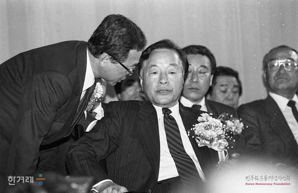 - 1990년 4월 10일 김영삼 민자당 최고위원이 자신의 지역구인 부산 서구지구당 개편대회에 참석하고 있다, 김위원은 이날 연설에서 우리나라에 공작정치와 정보정치가 다시 시작됐다고 주장했다.