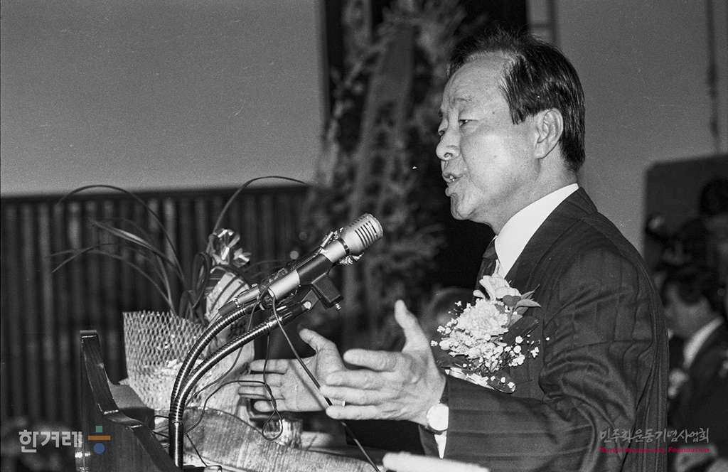 - 1990년 4월 10일 김영삼 민자당 최고위원이 자신의 지역구인 부산 서구지구당 개편대회에 참석하고 있다, 김위원은 이날 연설에서 우리나라에 공작정치와 정보정치가 다시 시작됐다고 주장했다.