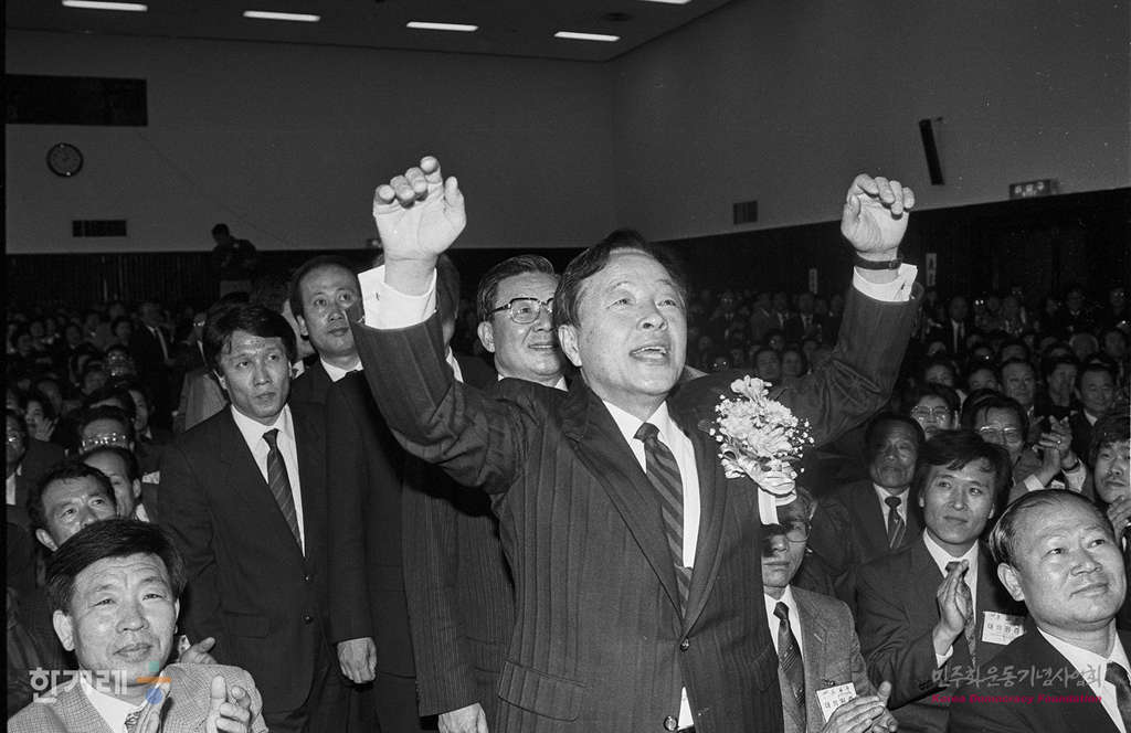 - 1990년 4월 10일 김영삼 민자당 최고위원이 자신의 지역구인 부산 서구지구당 개편대회에 참석하고 있다, 김위원은 이날 연설에서 우리나라에 공작정치와 정보정치가 다시 시작됐다고 주장했다.