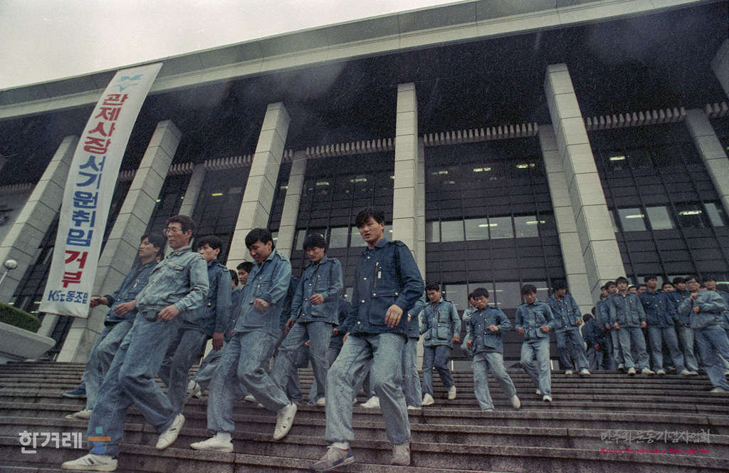 - 1990년 4월 12일 낮 12시5분 안동수 노조워원장을 비롯한 한국방송공사 5백여명의 노조원들이 서울 영등포구 여의도동 한국방송공사 본관 6층 사장실앞 복도에 신임사장 서기원씨의 취임을 반대하며 농성을 벌이다 공사쪽의 요청에 따라 건물안으로 진입한 3백여명의 경찰에 의해 노조간부 등 1백17명이 강제연행되고 있다.