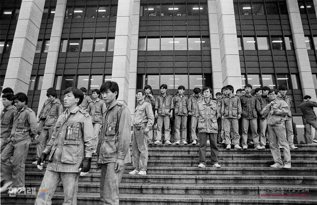 - 1990년 4월 12일 낮 12시5분 안동수 노조워원장을 비롯한 한국방송공사 5백여명의 노조원들이 서울 영등포구 여의도동 한국방송공사 본관 6층 사장실앞 복도에 신임사장 서기원씨의 취임을 반대하며 농성을 벌이다 공사쪽의 요청에 따라 건물안으로 진입한 3백여명의 경찰에 의해 노조간부 등 1백17명이 강제연행되고 있다.