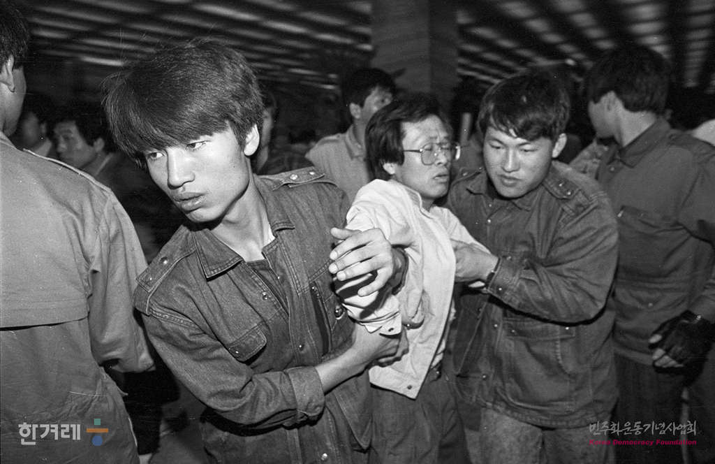 - 1990년 4월 12일 낮 12시5분 안동수 노조워원장을 비롯한 한국방송공사 5백여명의 노조원들이 서울 영등포구 여의도동 한국방송공사 본관 6층 사장실앞 복도에 신임사장 서기원씨의 취임을 반대하며 농성을 벌이다 공사쪽의 요청에 따라 건물안으로 진입한 3백여명의 경찰에 의해 노조간부 등 1백17명이 강제연행되고 있다.