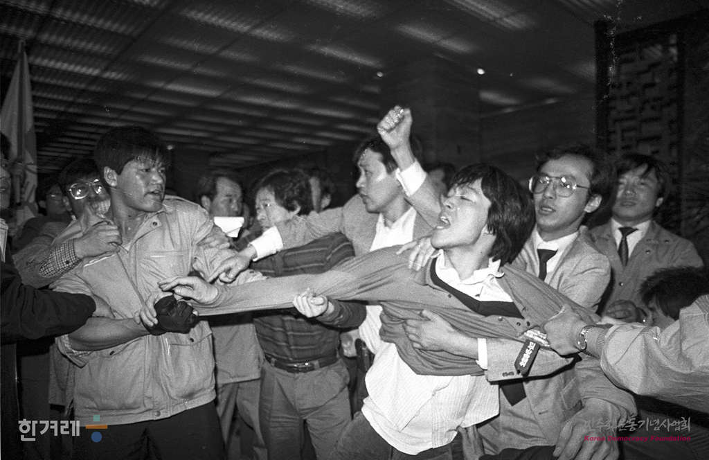 - 1990년 4월 12일 낮 12시5분 안동수 노조워원장을 비롯한 한국방송공사 5백여명의 노조원들이 서울 영등포구 여의도동 한국방송공사 본관 6층 사장실앞 복도에 신임사장 서기원씨의 취임을 반대하며 농성을 벌이다 공사쪽의 요청에 따라 건물안으로 진입한 3백여명의 경찰에 의해 노조간부 등 1백17명이 강제연행되고 있다.