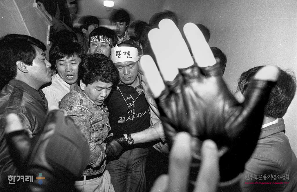 - 1990년 4월 12일 낮 12시5분 안동수 노조워원장을 비롯한 한국방송공사 5백여명의 노조원들이 서울 영등포구 여의도동 한국방송공사 본관 6층 사장실앞 복도에 신임사장 서기원씨의 취임을 반대하며 농성을 벌이다 공사쪽의 요청에 따라 건물안으로 진입한 3백여명의 경찰에 의해 노조간부 등 1백17명이 강제연행되고 있다.