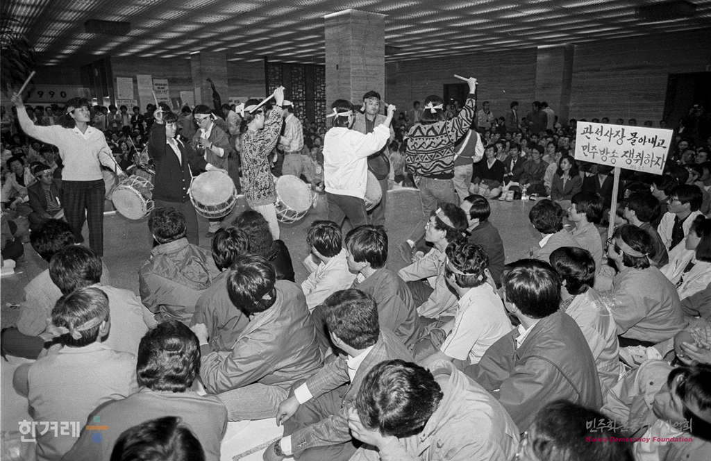 - 1990년 4월 13일 오후1시 한국방송공사 사원들이 본관 2층 중앙홀에서 비노조원을 포함한 3천 5백여명이 참석해 경찰의 방송국난입에 항의하는 사원총회를 열고 신임사장 서기원씨가 퇴진할 때까지 무기한 제작거부 및 밤샘농성을 계속키로 결의하고 있다.