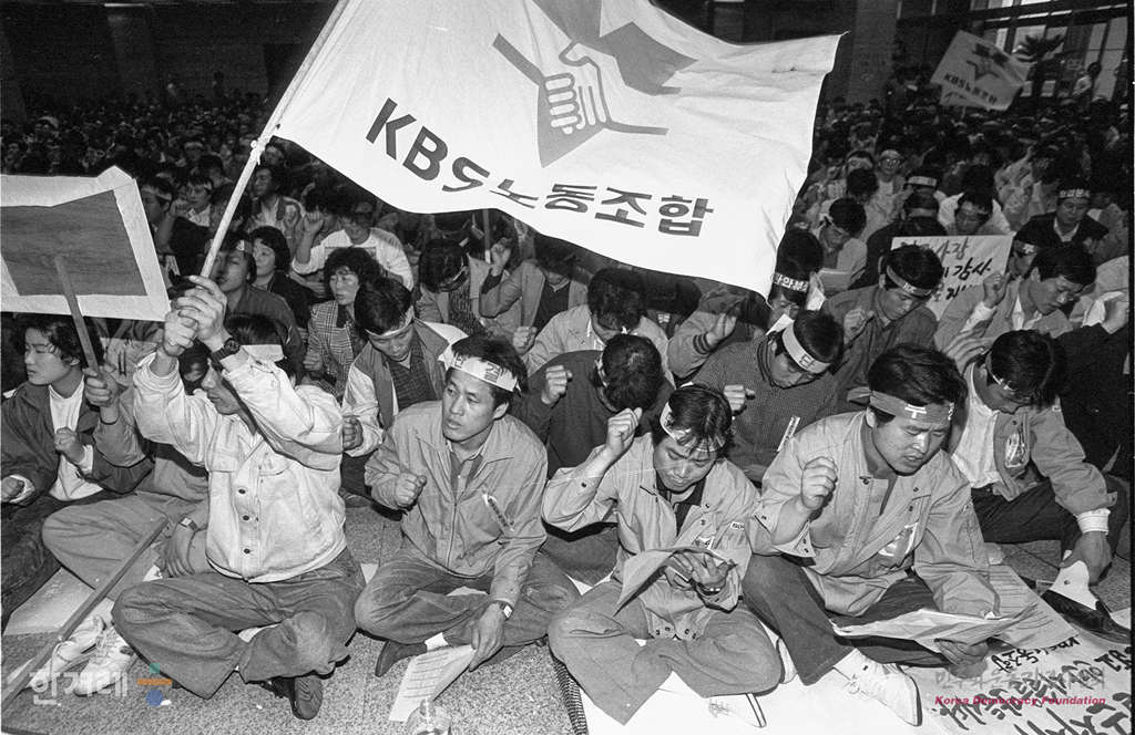 - 1990년 4월 13일 오후1시 한국방송공사 사원들이 본관 2층 중앙홀에서 비노조원을 포함한 3천 5백여명이 참석해 경찰의 방송국난입에 항의하는 사원총회를 열고 신임사장 서기원씨가 퇴진할 때까지 무기한 제작거부 및 밤샘농성을 계속키로 결의하고 있다.