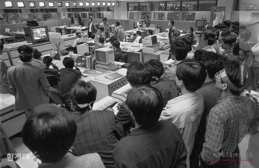- 1990년 4월 13일 오후1시 한국방송공사 사원들이 본관 2층 중앙홀에서 비노조원을 포함한 3천 5백여명이 참석해 경찰의 방송국난입에 항의하는 사원총회를 열고 신임사장 서기원씨가 퇴진할 때까지 무기한 제작거부 및 밤샘농성을 계속키로 결의하고 있다.
